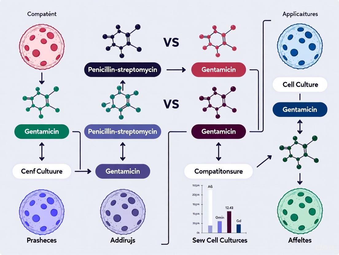 The routine use of antibiotics has long been a standard practice in mammalian cell culture to prevent bacterial contamination, a major threat that can compromise experimental results and lead to the loss of valuable cell lines [9] [15]. Among the most common agents used for this purpose are the combination of penicillin-streptomycin (Pen-Strep) and gentamicin [9] [15]. While both provide broad-spectrum antibacterial coverage, they possess distinct biochemical properties, historical contexts, and effects on cultured cells that influence their suitability for different research applications. This guide provides an objective comparison of Pen-Strep and gentamicin, framing their use within the broader context of modern cell culture practices, which increasingly advocate for antibiotic-free media to avoid potential cytotoxic effects and the masking of low-grade, persistent contaminants like mycoplasma [9] [20] [4].